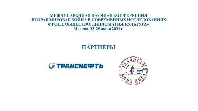 23-25 июня 2021 г. в Москве (здание Российскогоисторического общества: Москва, ул. Воронцово поле, д. 13, стр. 1) проходит представительная международная научная конференция «Фронт. Общество. Дипломатия. Культура. К 75-летию Победы в Великой Отечественной и Второй мировой войне».
