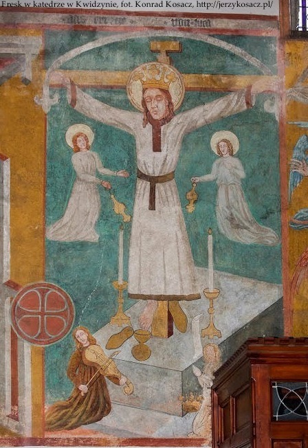 Христианство облагородило данный мотив. Место вора занял благочестивый паломник, скрипач и жонглер, а центральной идеей стала божественная милость даже к самым обездоленным, маргинализированным людям. Впервые легенда об оживающем распятии Иисуса Христа из Лукки (Volto Santo) и чудесном подарке паломнику-менестрелю встречается в двух источниках XII в.: отрывке «О серебряной обуви Святого Лика, данной чудесным образом некоему бедняку» («De calciamento sancti vultus argenteo cuidam paupero mirabiliter oblato») диакона Леобина (Лебоина) 1-й пол. XΙΙ вв. и дорожнике исландского аббата Николая (Nikulás Bergþórsson) 1150-х гг. Бедный скрипач, не знавший ни одной молитвы, в награду за свою искусную игру на музыкальном инструменте получает от ожившего деревянного распятия драгоценную туфлю.