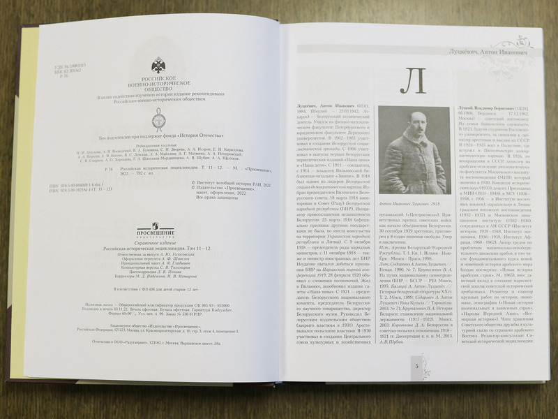 Российская историческая энциклопедия/ Гл. ред. А.О. Чубарьян. М.: Просвещение, 2022. Т. 11-12: Луцкевич Антон Иванович – Мясников Гавриил Ильич. 792 с. ил. 99 усл. п. л. ISBN 978-5-09-084049-1 (общ.); ISBN 978-5-09-102184-4 (Т. 11–12).
